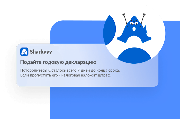 Добавьте доходы и расходы, после чего отчитайтесь в пару кликов. Сервис напомнит о всех дедлайнах и поможет подать налоговые декларации.